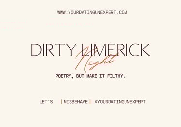 A mischievous writing game where you and your partner turn playful prompts into dirty, hilarious limericks created entirely from your own twisted imagination.
