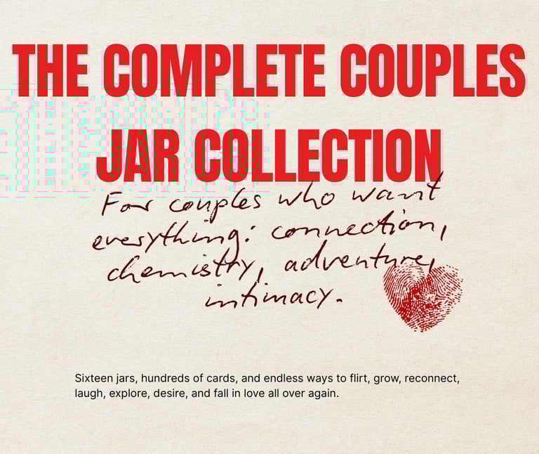 A premium bundle of 16 couples jars designed to spark connection, deepen intimacy, strengthen communication and build chemistry.