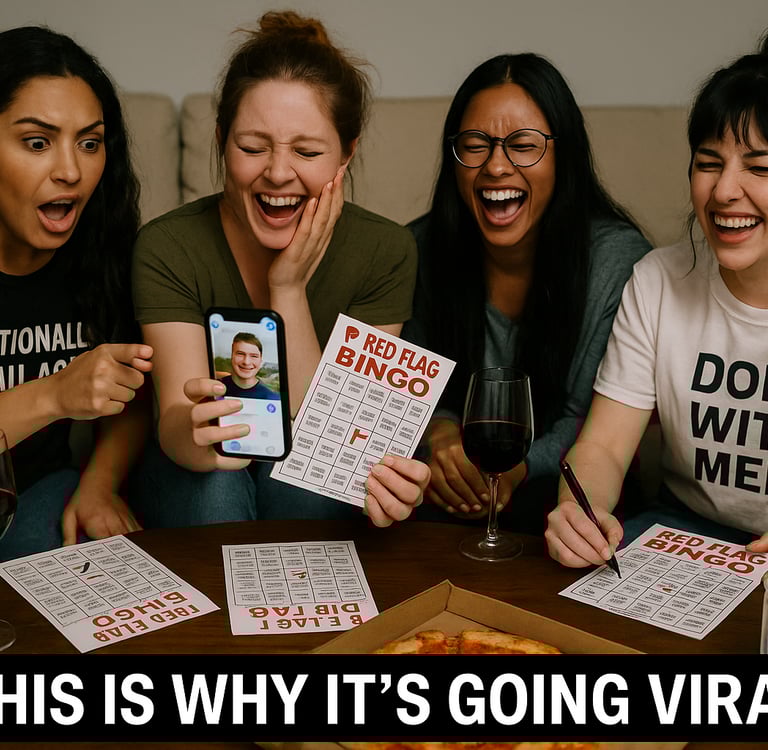 Post your game night or solo chaos using #RedFlagBingoSeries. We’re building a community of women turning heartbreak into humor — one cringe profile at a time.